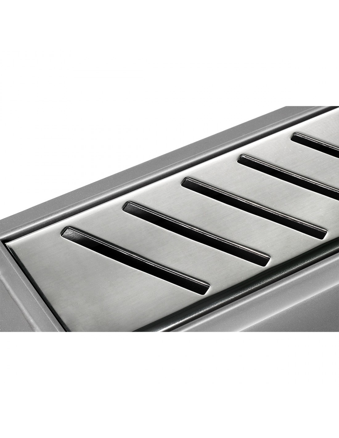 ist eine qualitativ hochwertige Duschrinne, die visuell als auch funktionell in Ihrem Bad überzeugen wird. Das 50 mm breite Designrost "Steel" zeichnet sich durch ein perforiertes Schlitzmuster aus und verleiht Ihrer Dusche einen stilvoll eleganten Gesamtlook.