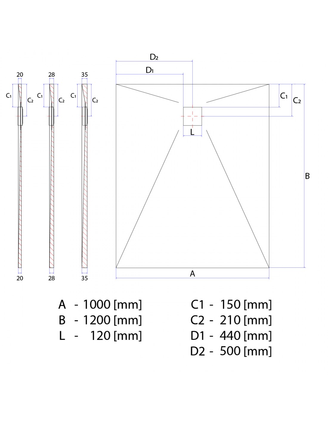 - Eine Plattenstärke von 35 mm ist die dickste verfügbare Stärke mit einem steileren Gefälle, höherer Schalldämmung und robusteren Oberfläche. Es eignet sich für größere Duschbereiche mit einer Längenseite ≥ 120 cm.