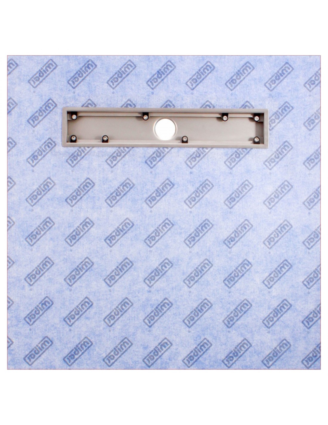 Das Wiper Duschelement beinhaltet ab Werk eine integrierte Edelstahl-Duschrinne aus der Serie "Premium". Diese ist grundsätzlich 300 mm kürzer als die Seite, auf der die Rinne verbaut wird - Beispiel: Bei einem 800 x 1200 mm großen Board, ist die Länge der Rinne = 500 mm. Der umschließende Flansch der Duschrinne ist in der Duschplatte versunken und gewährleistet somit eine sichere Wasserabweisung.