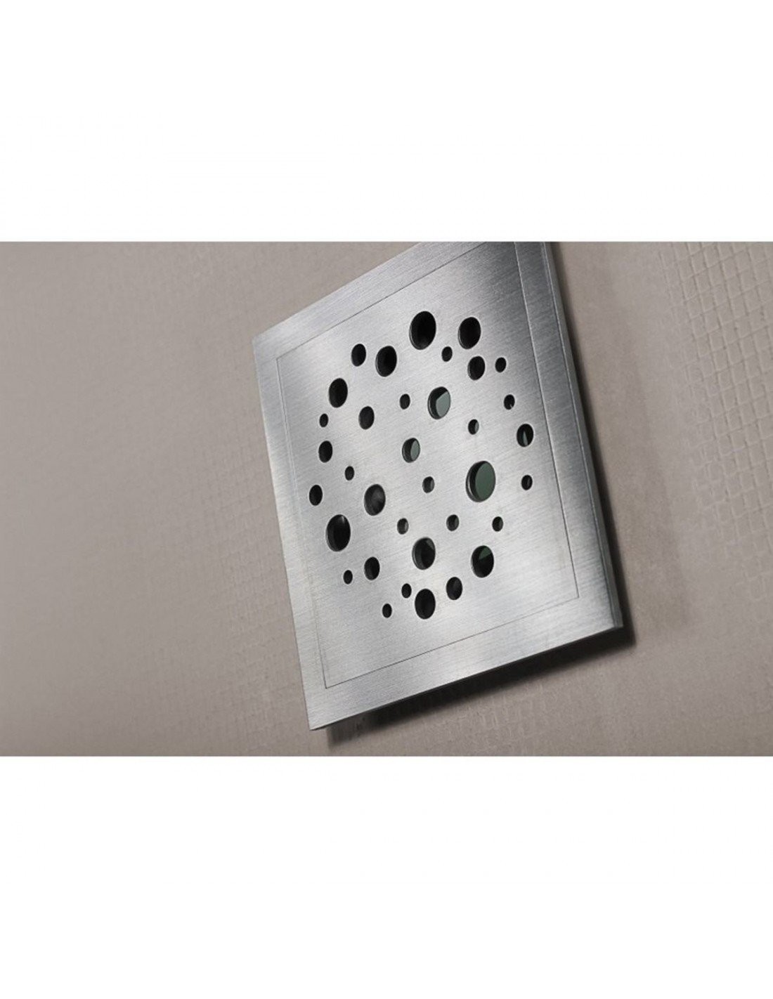Duschelemente der Serie "Showerlay Dots" verfügen über einen werkseitig integrierten Edelstahl-Punktablauf. Nicht sichtbar ist der umlaufende Edelstahl-Flansch, der in der XPS-Platte versunken ist und zu Abdichtungszwecken dient. Bei Bestellung dieses Produktes haben Sie die Wahl über die Positionierung des Ablaufs entweder mittig, versetzt am oberen Rand, oder in der Ecke oben links. Falls Sie eine andere Position wünschen, kontaktieren Sie uns bitte im Vorfeld.