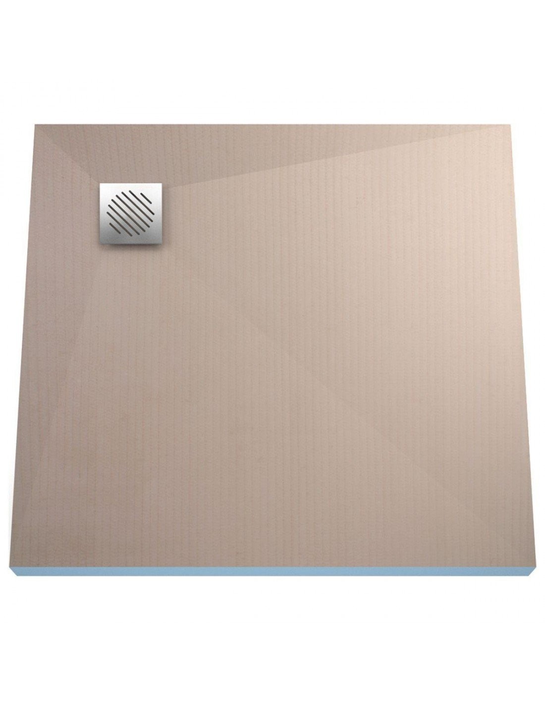 - Vorgefertigtes Gefälle: Jedes Duschelement wird per CNC-Technik mit einem 4-seitigen Gefälle ausgestattet, welches je nach Plattenstärke und -größe eine unterschiedlich starke Neigung hat. Das vorgeformte Gefälle erleichtert die Fliesenverlegung und sorgt für einen optimalen Wasserablauf aus allen vier Ecken.