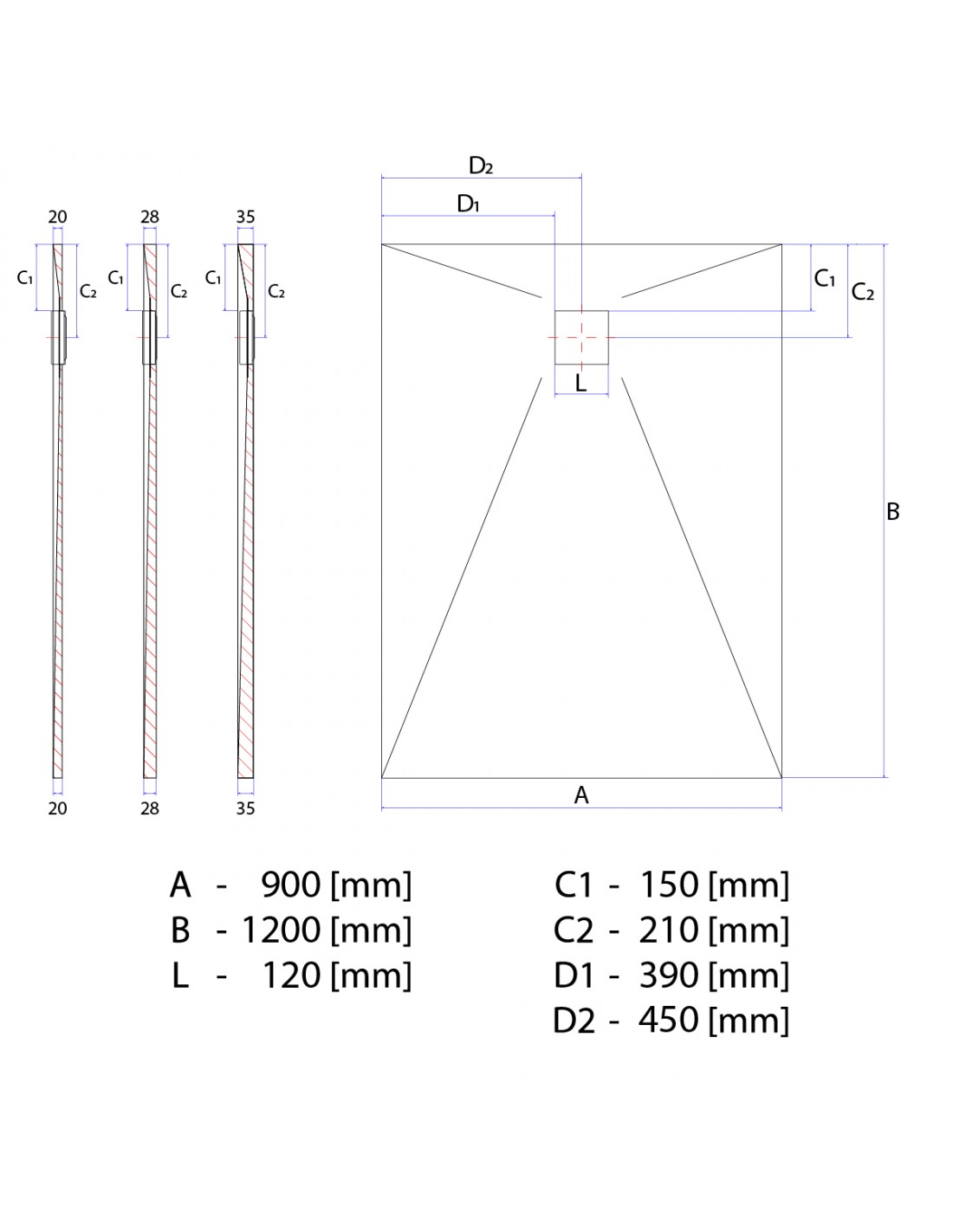 - Eine Plattenstärke von 28 mm bietet ein optimales Gefälle und ist die beliebteste Wahl für klassische Duschmaße wie z.B. 90 x 120 cm. Es garantiert einen reibungslosen Wasserablauf und ideale Schallisolierung.