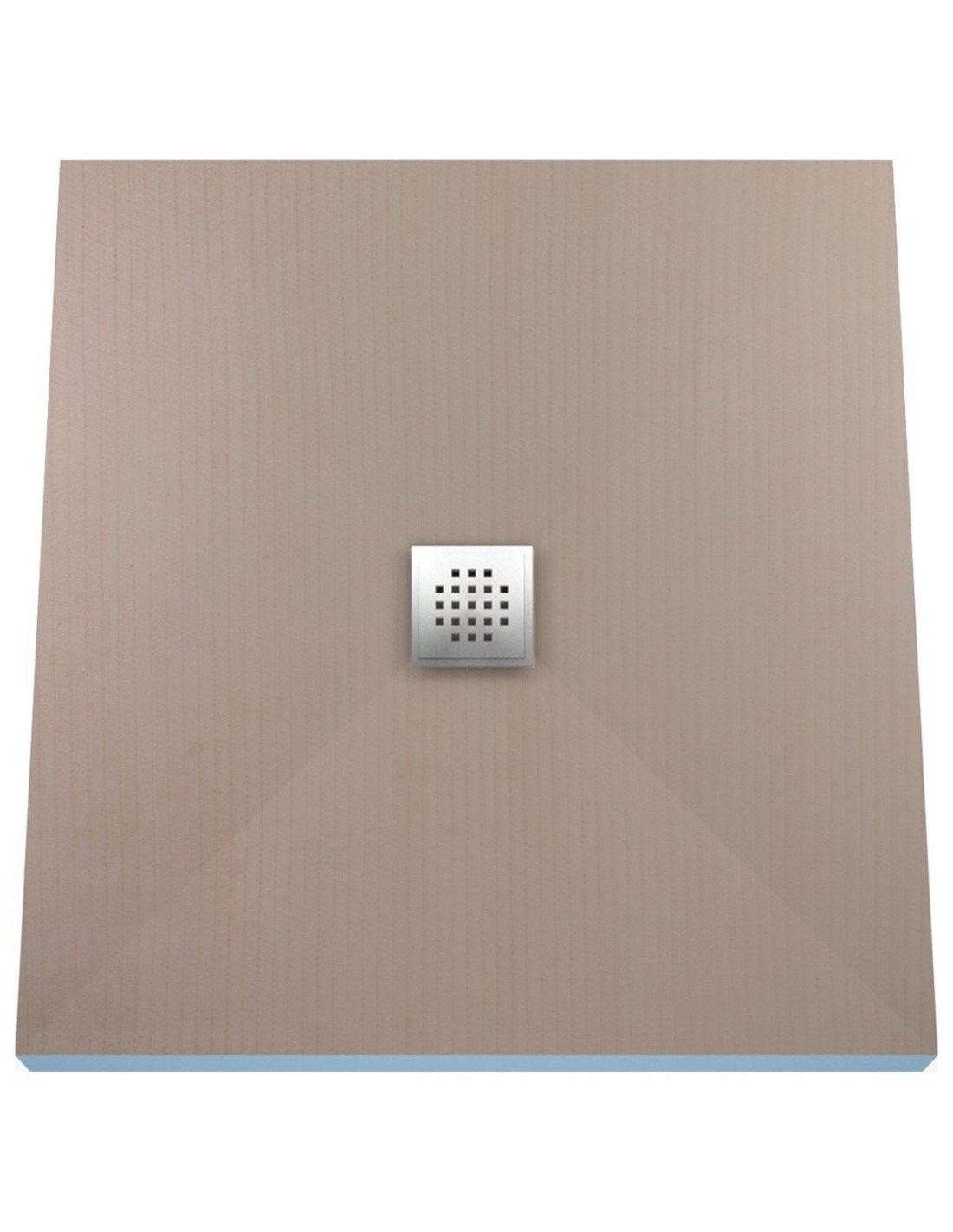Befliesbares Duschelement 90 x 120 cm mit vierseitigem Gefälle für Fliesenboden mit integriertem Edelstahl-Punktablauf (wahlweise mittig, am Rand versetzt oder in der Ecke), inkl. Siphon und Designrost Sirocco (Vierecke)