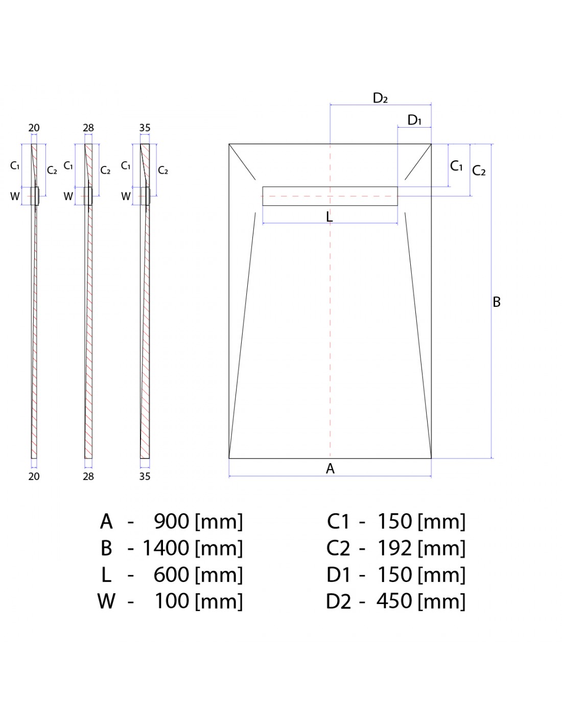 - Eine Plattenstärke von 35 mm ist die dickste verfügbare Stärke mit einem steileren Gefälle, höherer Schalldämmung und robusteren Oberfläche. Es eignet sich für größere Duschbereiche mit einer Längenseite ≥ 120 cm.