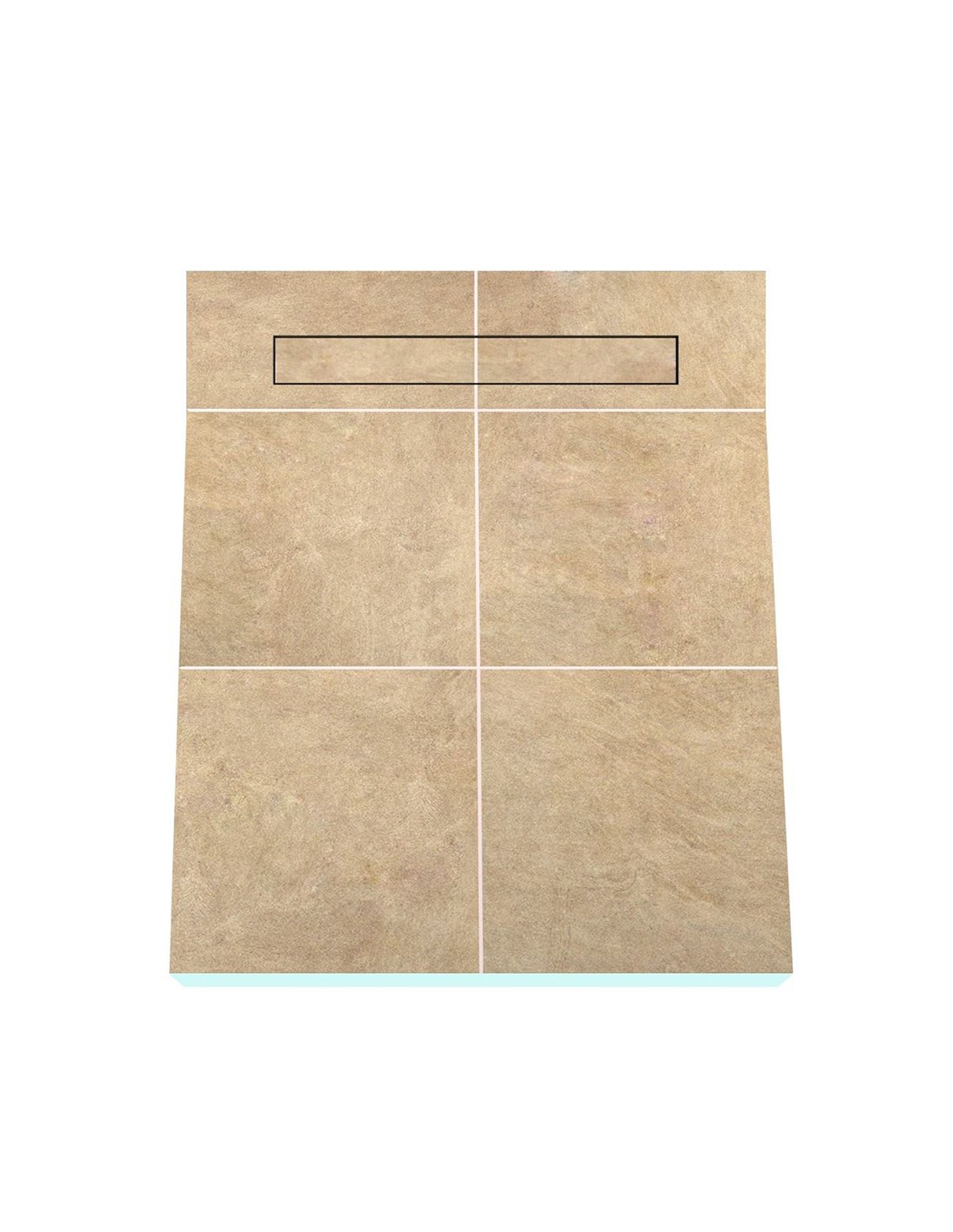 - Vorgefertigtes Gefälle: Jedes Duschelement beinhaltet ein per CNC-Technik eingearbeitetes 4-seitiges Gefälle, welches je nach Plattenstärke und -größe eine unterschiedlich starke Neigung hat. Das vorgeformte Gefälle erleichtert die Bodenverlegung und sorgt für einen optimalen Wasserablauf aus allen vier Ecken.