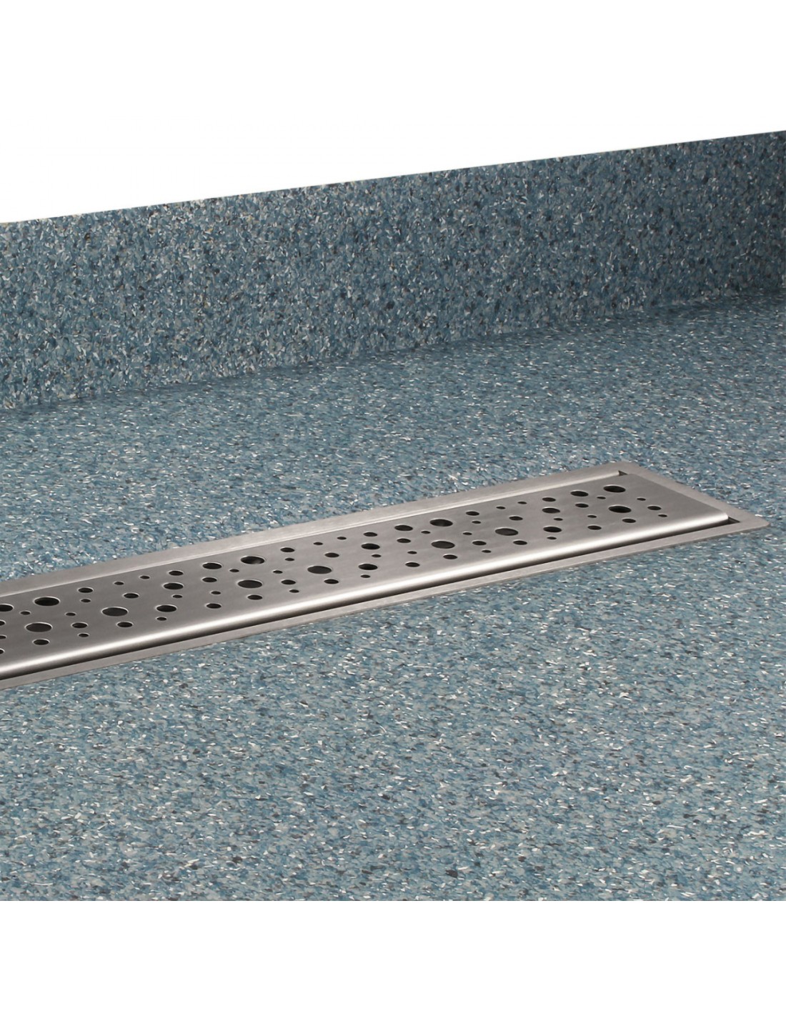 Duschelement 90 x 120 cm mit vollflächiger Dichtmembrane, vierseitigem Gefälle und integrierter Edelstahl-Duschrinne speziell für Vinylboden, Set inklusive Designrost Mistral (Tropfen) und Siphon