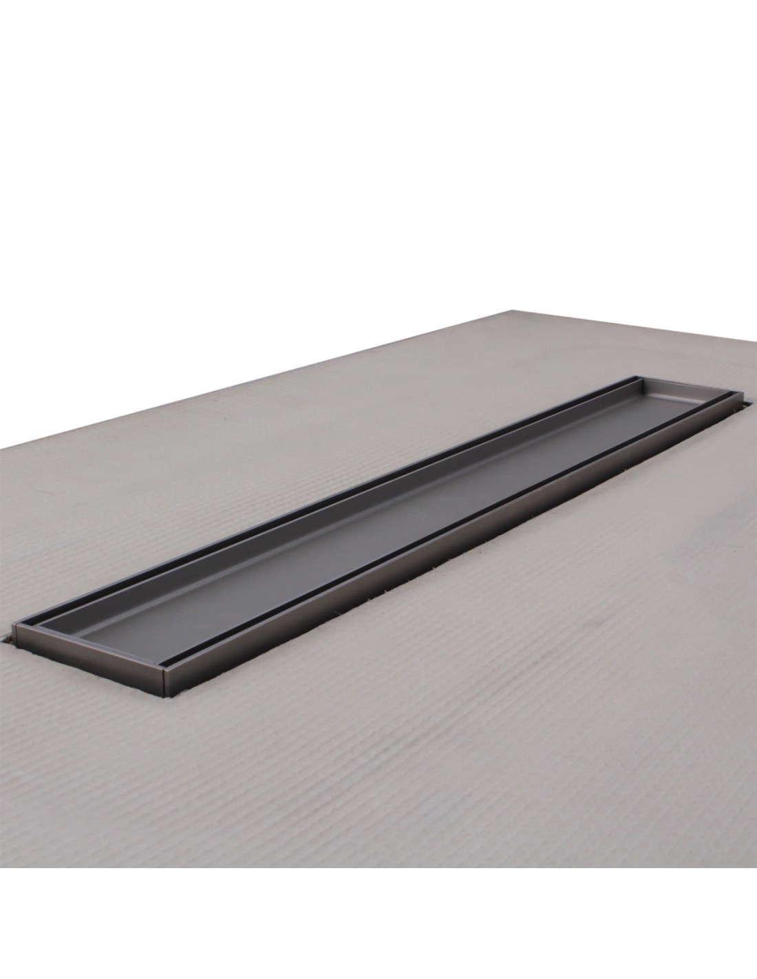 - Integrierter Ablauf: Werkseitig wird eine [drain_length] cm lange Duschrinne speziell für Vinylboden aus der Serie "VF" mit Isolierflansch sauber in die Platte eingearbeitet.