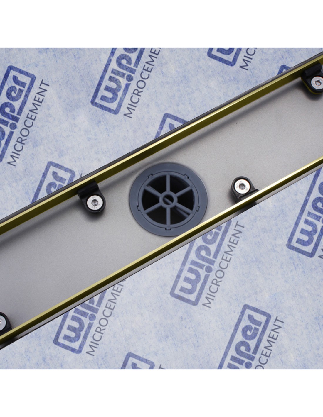 Die eingearbeitete Duschrinne inklusive Designabdeckung sind aus rostfreiem Edelstahl V2A (AISI 304), gemäß DIN EN 10088, gefertigt und können auf Wunsch auch aus V4A (AISI 316) hergestellt werden. Dieses langlebige Material ist eine essentielle Wahl für Nassräume, da es eine besonders hohe Korrosions- und Oxidationsbeständigkeit besitzt. Standardmäßig ist die Oberfläche gebürstet, kann jedoch auf Anfrage auch in polierter oder matter Ausführung geliefert werden.