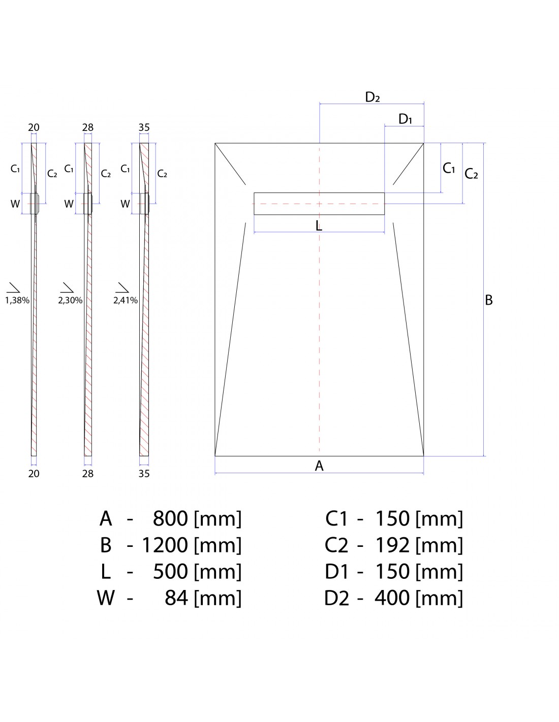- Sperrwasserhöhe: 35 mm (DIN EN 1253 konform)