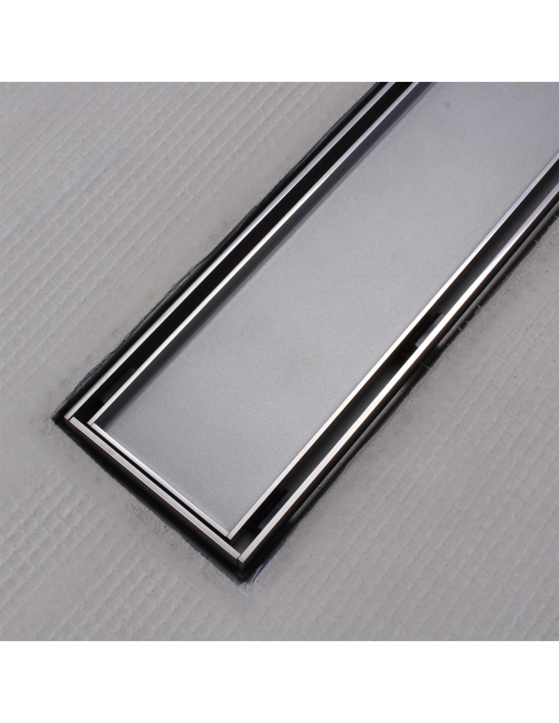 Diese Ablaufrinne wurde speziell für die Anwendung von Fliesenboden konzipiert. Auf den umlaufenden Flansch werden Fliesen bis maximal 15 mm aufgebracht. Diese Höhe setzt sich zusammen aus der Belagstärke, Kleber sowie weiteren Materialien wie Dichtvliesen oder optionale Heizmatten. Die Höhe darf nicht überschritten werden, um ein nahtloses Erscheinungsbild in der Dusche zu erzeugen.