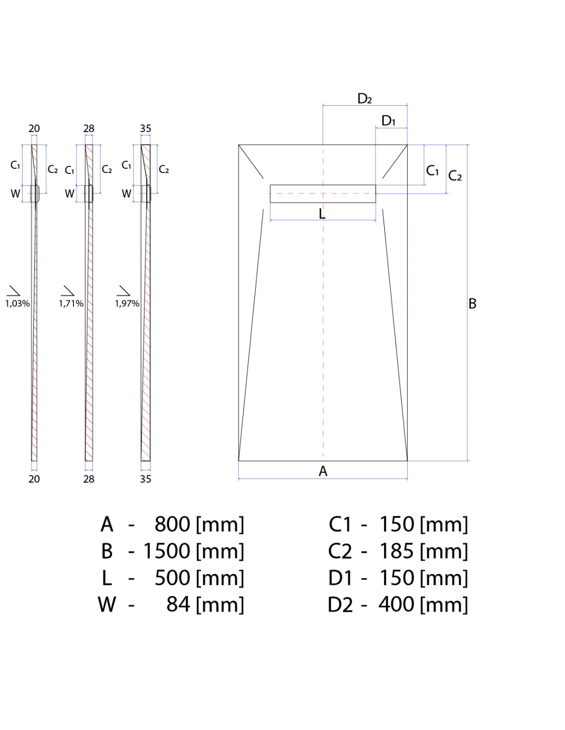 - Sperrwasserhöhe: 35 mm (DIN EN 1253 konform)