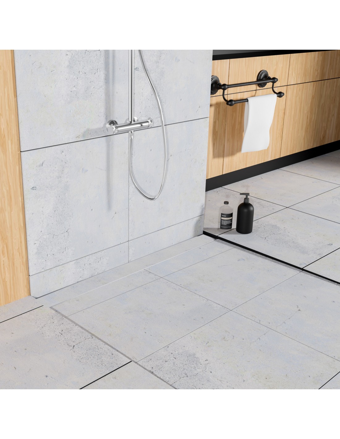 Diese Ablaufrinne wurde speziell für die Anwendung von nahtlosen Spachtelböden wie Mikrozement konzipiert. Solche Designböden sind nicht nur strapazierfähig und wärmespeichernd, sondern auch sehr pflegeleicht. Die fugenlose Oberfläche erzeugt ein minimalistisches und aufgeräumtes Erscheinungsbild – die ideale Entscheidung für moderne barrierefreie Bäder.