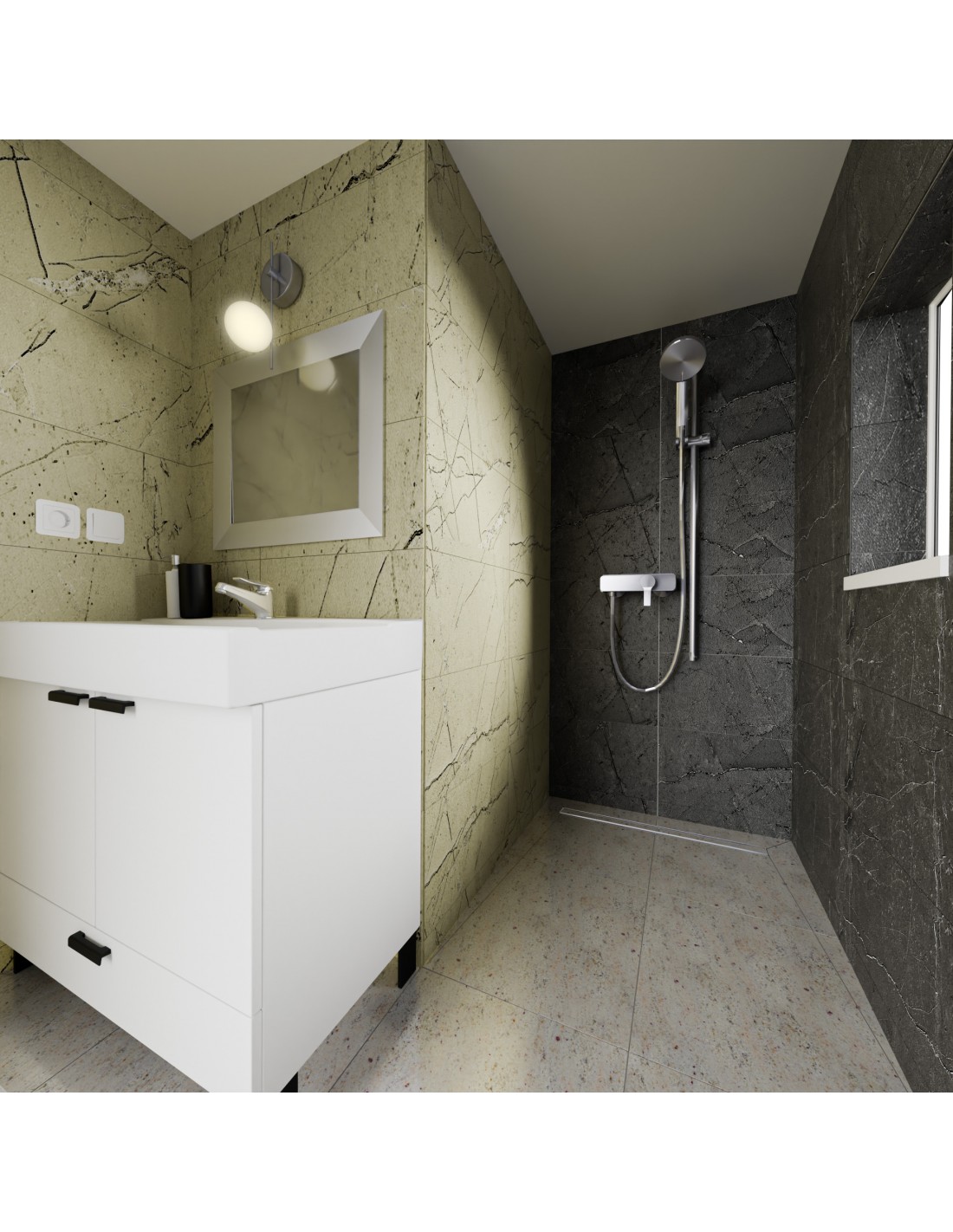 Diese Ablaufrinne wurde speziell für die Anwendung von nahtlosen Spachtelböden wie Mikrozement konzipiert. Solche Designböden sind nicht nur strapazierfähig und wärmespeichernd, sondern auch sehr pflegeleicht. Die fugenlose Oberfläche erzeugt ein minimalistisches und aufgeräumtes Erscheinungsbild – die ideale Entscheidung für moderne barrierefreie Bäder.