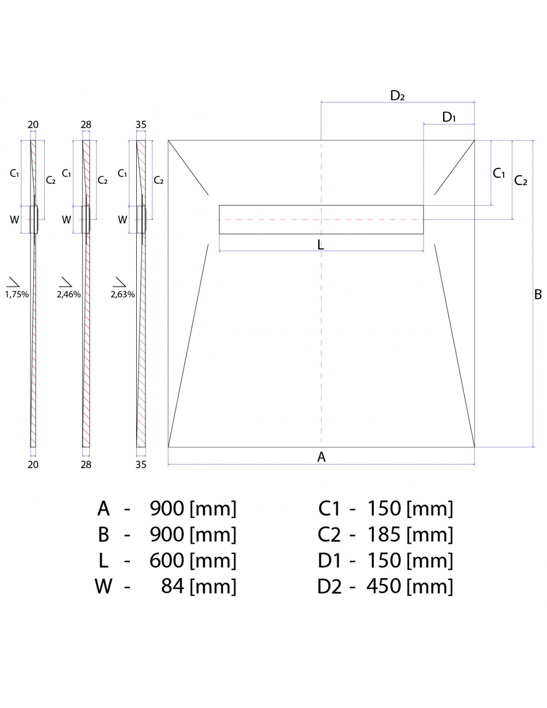 - Großes Sortiment: Die Duschrinne ist in acht Längen zwischen 50-120 cm erhältlich. Sonderlängen bis zu 2 Meter am Stück sind auf Anfrage möglich. Wir empfehlen eine Länge, die 20 cm kürzer ist als Ihre geplante Duschraumbreite.