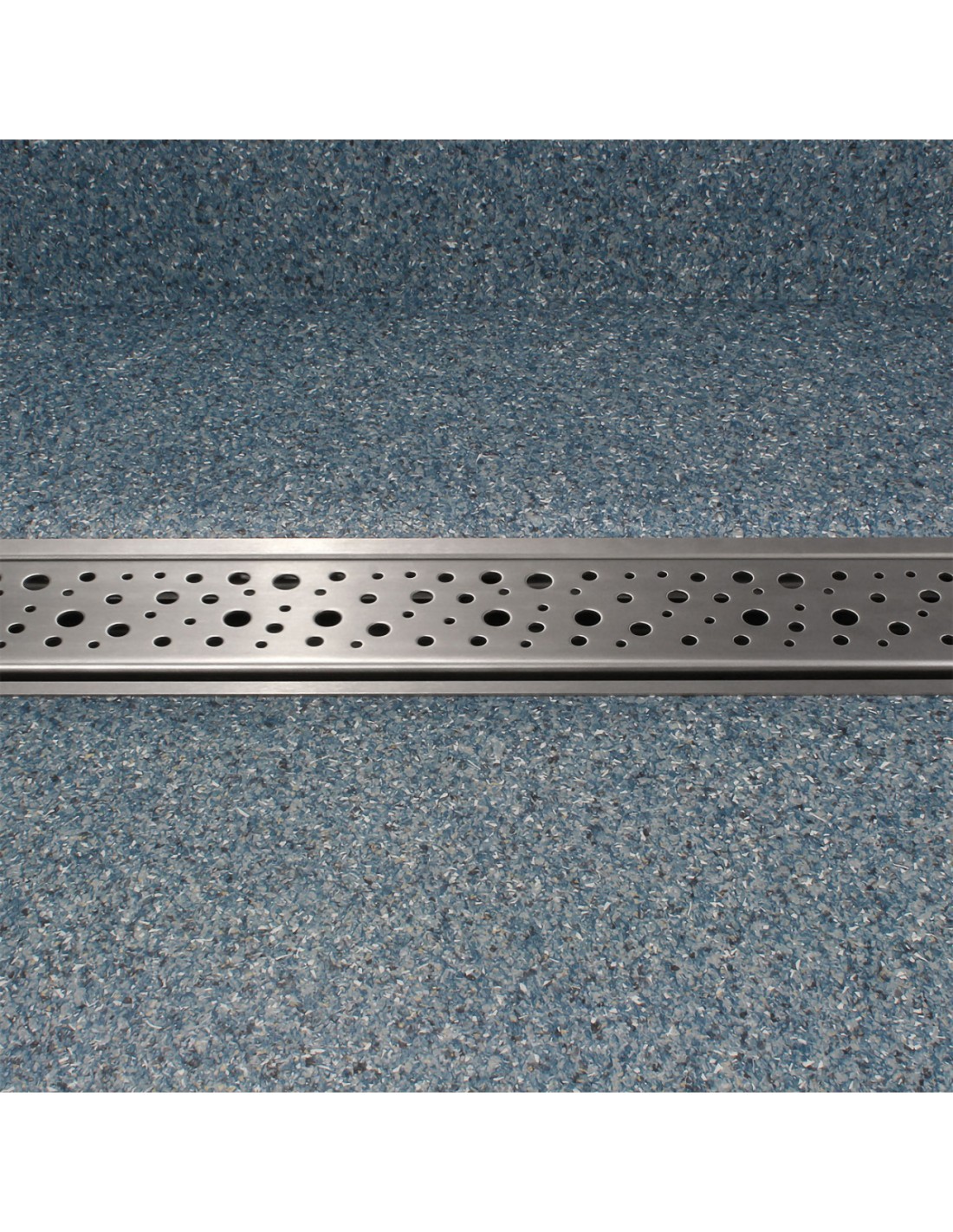 - Material und Struktur: Die gesamte Ablaufrinne inkl. Designrost ist aus Edelstahl AISI 304, gem. DIN EN 10088, gefertigt (316 auf Anfrage möglich). Die Siphons sind aus Polypropylen (PP) hergestellt.