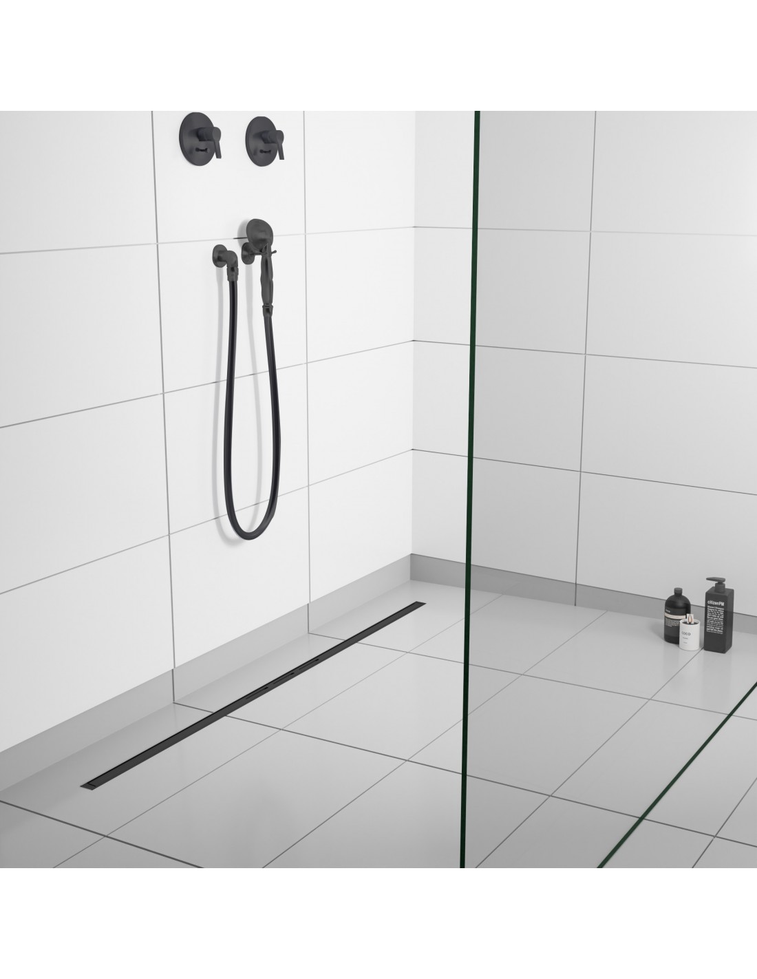 Die Duschrinne 90 cm Wiper MCR PVD Mistral Black ist unsere neueste Innovation für Mikrozement – ein dünnschichtiger dekorativer Belag, welcher aus Zement, Harzen, Additiven und Pigmenten hergestellt wird. Dieser Bodenbelag erzeugt einen ästhetischen, industriellen Look und wird bei der Anwendung im Badezimmer immer beliebter. Das Komplett-Set umfasst den Rinnenkörper mit einstellbarer Belaghöhe zwischen 3-12 mm, Dichtmanschette, Montagefüße, Siphon sowie ein Designrost in der Oberfläche und Farbe nach Wahl. Eine Duschrinnen-Länge von 90 cm eignet optimal sich für geräumige Duschen, welche breiter als 1 Meter sind.