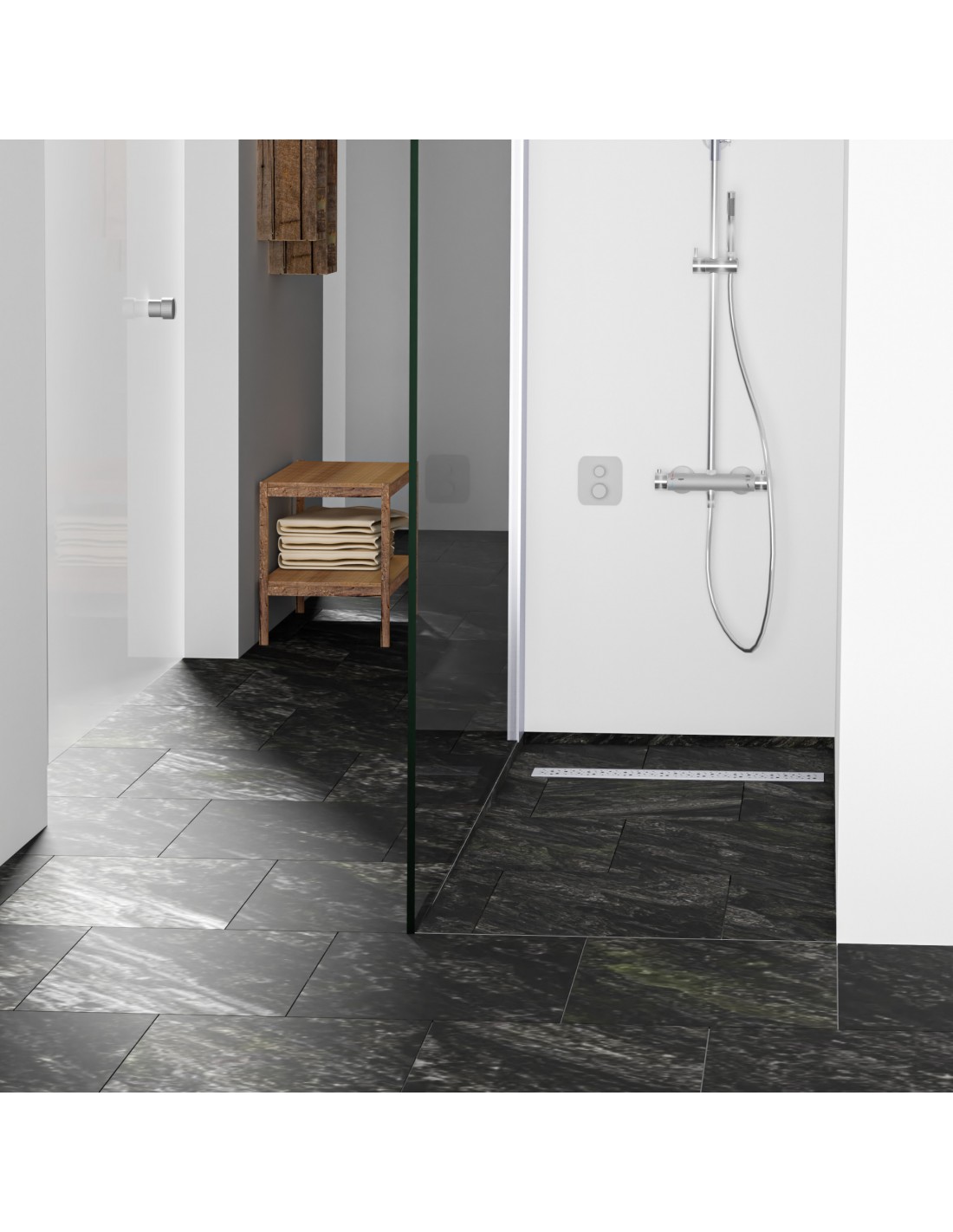 Die 100 cm Wiper VF Mistral ist eine hochwertige Duschrinne aus Edelstahl für Vinylboden. Dieser Belag wird zunehmend in öffentlichen Einrichtungen wie Krankenhäuser, Fitnessstudios oder Schwimmbäder verwendet, findet aber immer größere Beliebtheit in privaten Hausbetrieben oder Hotels, da das Material äußerst robust und feuchtigkeitsbeständig ist. Ein linearer Duschablauf ist die ideale Ergänzung in einer barrierefreien Dusche, welche moderne Optik mit langlebiger Funktionalität vereint. Durch den ebenerdigen Einbau entsteht ein nahtloser Übergang zum restlichen Badezimmerboden. Das stufenlose Konzept vergrößert den Raum optisch und ist vor allem für ältere Personen oder Menschen mit eingeschränkter Mobilität von Vorteil. Verschiedene Designoptionen sorgen für individuelle Gestaltungsfreiheit und mehr Flexibilität. Die Abdeckungen können auf Anfrage auch einzeln erworben werden.
