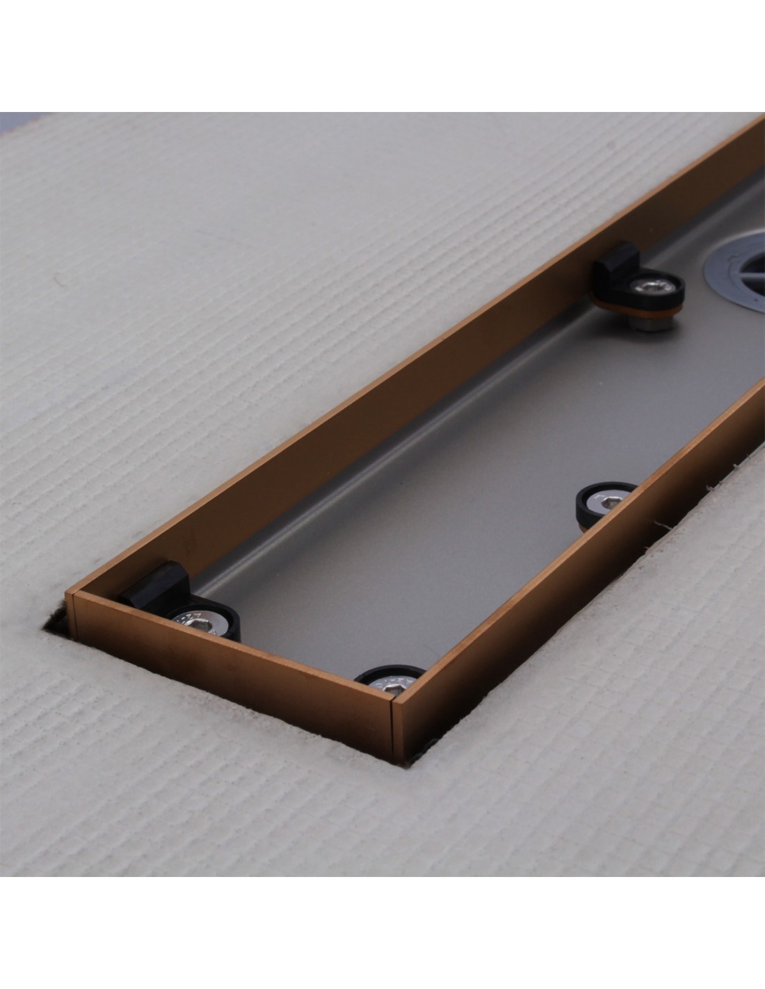 Die Duschrinne 60 cm Wiper VF Sirocco ist die optimale Lösung für Vinylboden im Bad. Anmerkung: nur für klassischen Rollvinylboden (PVC) geeignet, nicht für laminatähnliche Klickvinylplatten. Das Komplett-Set umfasst Ablaufkörper mit Isolierflansch und integrierter Klemmfunktion (zum sicheren Fixieren des Vinylbelags), Montagefüße sowie ein Designrost und Siphon nach Wahl. Eine 60 cm lange Duschrinne ist eine beliebte Wahl für Duschen mit einer Breite von 80 cm.