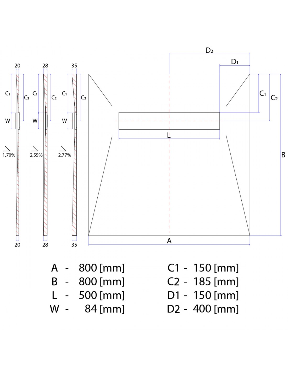 - Großes Sortiment: Die Duschrinne ist in acht Längen zwischen 50-120 cm erhältlich. Sonderlängen bis zu 2 Meter am Stück sind auf Anfrage möglich. Wir empfehlen eine Länge, die 20 cm kürzer ist als Ihre geplante Duschraumbreite.