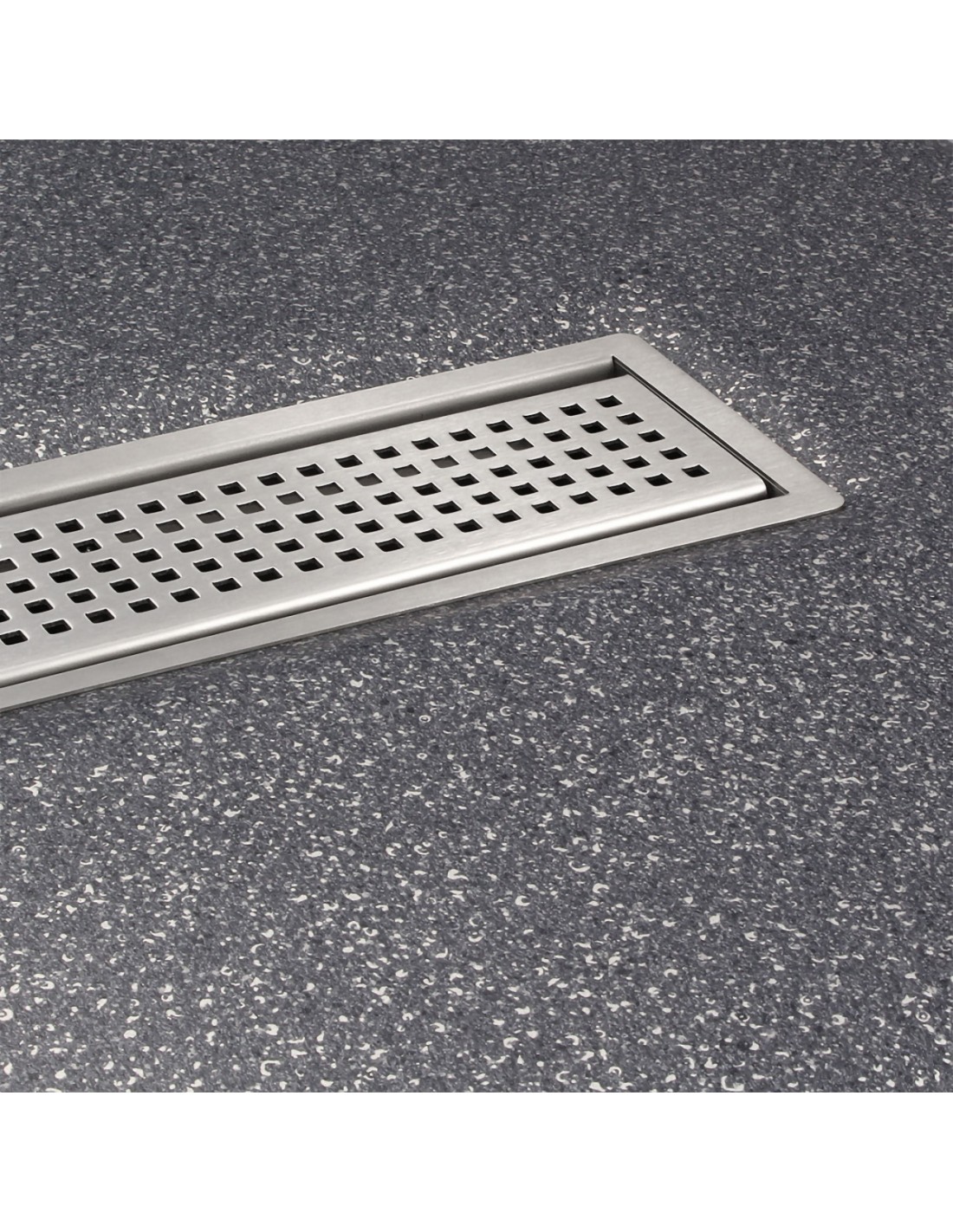 - Material und Struktur: Die gesamte Ablaufrinne inkl. Designrost ist aus Edelstahl AISI 304, gem. DIN EN 10088, gefertigt (316 auf Anfrage möglich). Die Siphons sind aus Polypropylen (PP) hergestellt.