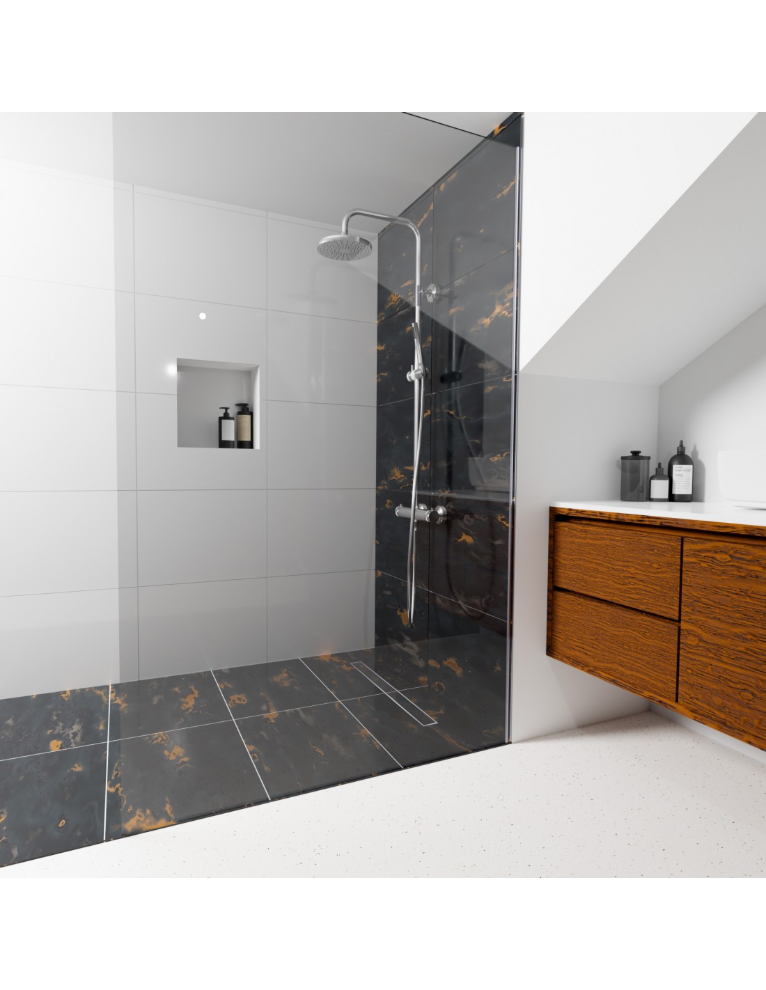 Wenn Sie noch unentschlossen sind, welche Fliesen Sie für Ihren Duschraum verwenden möchten, aber einen Zeitplan einhalten müssen, können Sie die Duschrinne installieren und den Raum abdichten, während Sie sich entscheiden. Bei Ihrer Bestellung wird ein Standard-Set mitgeliefert, aber zusätzliche Anpassungs-Sets, die zu Ihrer Fliesenstärke passen, können zu einem späteren Zeitpunkt separat bestellt werden, nachdem Sie Ihre gewünschte Fliese gefunden haben.