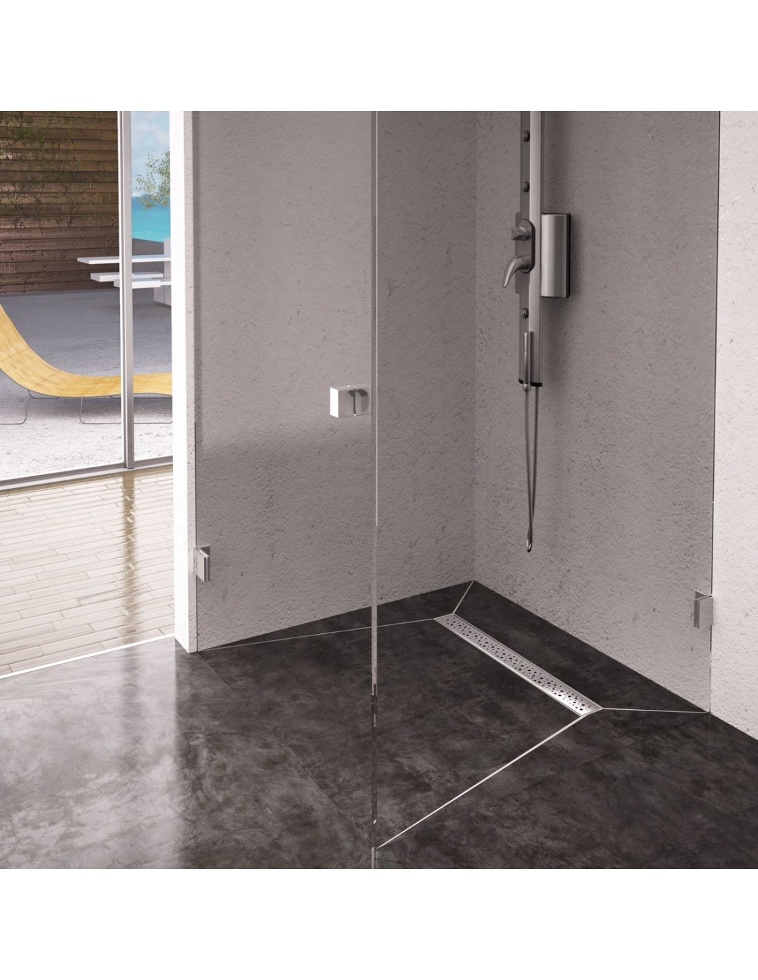 - Material und Struktur: Die gesamte Ablaufrinne inkl. Designrost und Siphon ist aus Edelstahl AISI 304, gem. DIN EN 10088, gefertigt (316 auf Anfrage möglich).