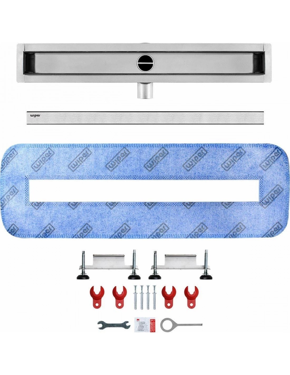 Die Duschrinne 60 cm Wiper Premium Slim Ponente ist eine filigrane, flache Ablauflösung für Fliesenboden. Sie besitzt eine besonders niedrige Einbauhöhe von nur 58 mm; mit Fliesen liegt die Gesamteinbauhöhe bei 70 mm. Das Komplett-Set umfasst Rinnenkörper mit angeschweißtem Siphon (nicht drehbar), Dichtmanschette, Montagefüße und Designrost nach Wahl. Eine 60 cm lange Duschrinne ist eine beliebte Wahl für Duschen mit einer Breite von 80 cm.