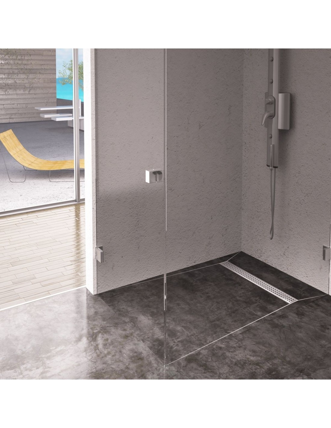 - Material und Struktur: Die gesamte Ablaufrinne inkl. Designrost und Siphon ist aus Edelstahl AISI 304, gem. DIN EN 10088, gefertigt (316 auf Anfrage möglich).