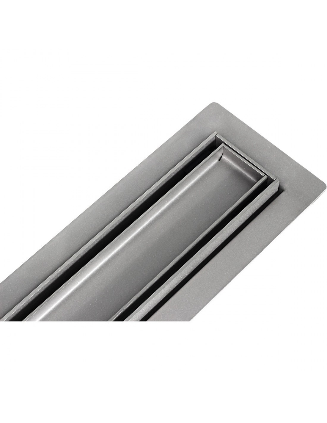 Diese Ablaufrinne wurde speziell für die Anwendung von Fliesenboden konzipiert. Auf den umlaufenden Flansch werden Fliesen zwischen 8-12 mm aufgebracht. Diese Höhe setzt sich zusammen aus der Belagstärke, Kleber sowie weiteren Materialien wie Dichtvliesen oder optionale Heizmatten. Die Höhe darf nicht überschritten werden, um ein nahtloses Erscheinungsbild in der Dusche zu erzeugen. Darüber hinaus bietet dieses Duschrinnen-Modell eine sekundäre Entwässerungsebene, die das zusätzliche Ablaufen von Sickerwasser unter den Fliesen ermöglicht. Diese Situation kann z.B. durch spätere Undichtigkeiten durch Rissbildungen im Untergrund oder Fugenrisse entstehen, wodurch Feuchtigkeit in die tieferen Bauschichten gelangt und von dort aus nicht mehr entweichen kann.
