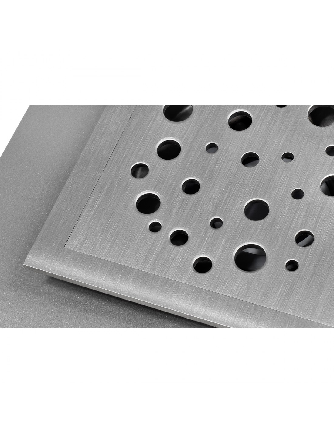- Material und Struktur: Der gesamte Duschablauf inkl. Designrost ist aus Edelstahl AISI 304, gem. DIN EN 10088, gefertigt (316 auf Anfrage möglich). Die Siphons sind aus Polypropylen (PP) hergestellt.